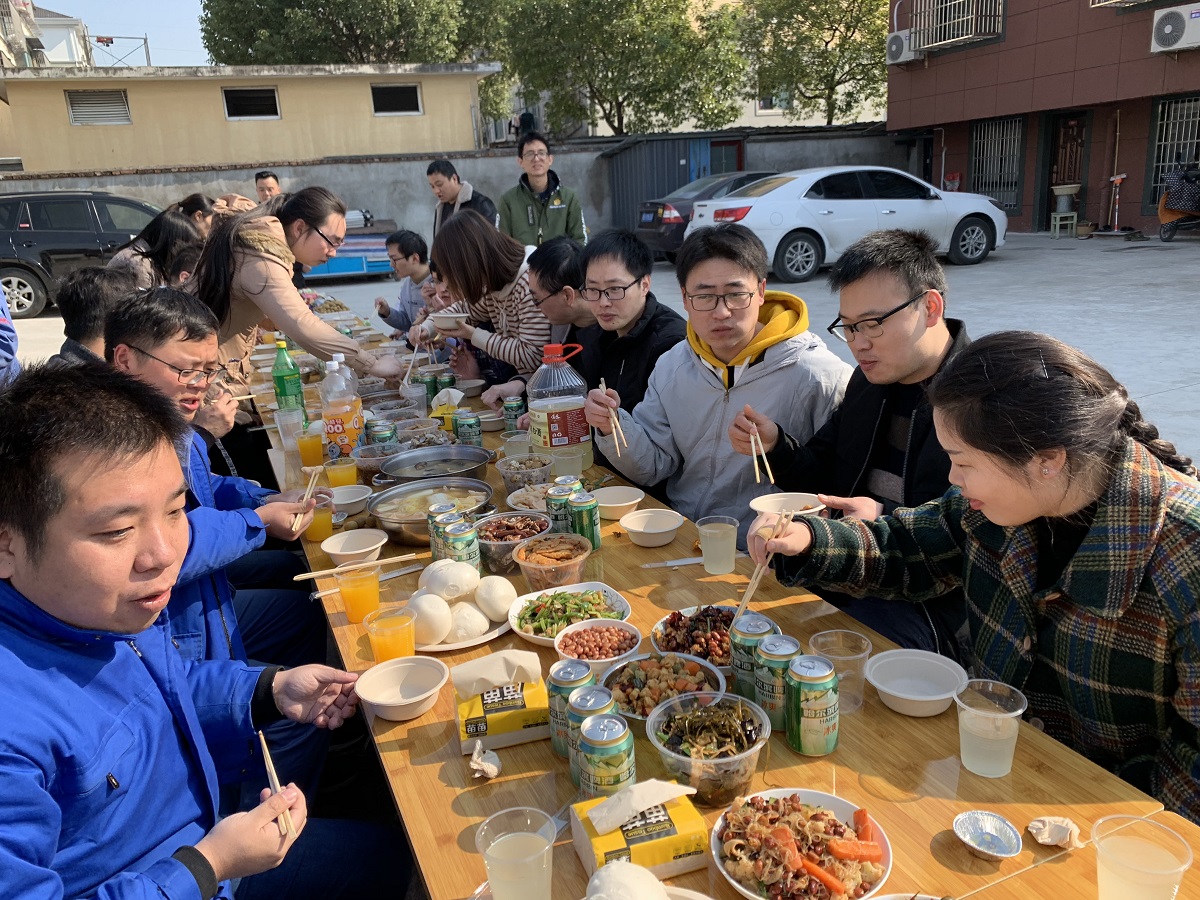 本次活動以宿舍為單位報名參加,以宿舍院落為活動地點,每個宿舍至少準備一個菜品,共同完成一頓豐盛大餐,旨在通過相互協(xié)作,增進彼此之間的友誼。早晨7點剛過,就陸續(xù)有同事出發(fā)去菜市場準備食材,為中午的活動做準備。隨著午餐時間漸近,宿舍樓里熱鬧非凡,鍋鏟碰撞聲、油鍋嗞拉聲、嬉笑聲此起彼伏,大家擼起袖子,使出看家本領,不一會各菜品便相繼亮相,川菜系的毛血旺、酸菜魚、辣子雞丁、醬爆螺螄,黔菜系的宮保雞丁,還有各色小炒:韭黃炒雞蛋、清炒西葫蘆、小炒木須肉等,囊括了五湖四海的味道。新老員工在院落里擺起長桌,如家人般相互招呼入座,明媚的陽光下,大家推杯換盞,品評佳肴,談笑風生,其樂融融!
